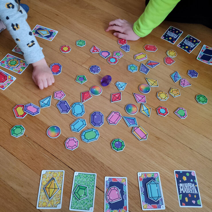 La Morada Maldita es un emocionante juego de cartas, en el que el objetivo principal es resolver desafíos para acumular puntos. Cada reto te invita a encontrar las gemas indicadas en las cartas, prestando atención a sus características específicas como color, número de lados o forma.