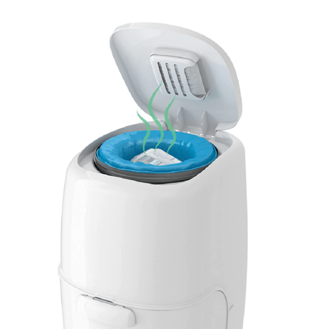 Mantén tu habitación fresca: a diferencia de otros cubos sin abrazaderas, el cubo completo cuenta con abrazaderas dobles Air-Tite que funcionan con las bolsas de repuesto de pañales de 7 capas y filtro de carbono para añadir una capa de doble protección contra olores.